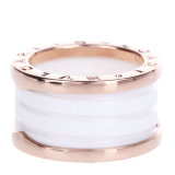 Bvlgari(宝格丽) 白陶瓷三环镶玫瑰金戒指54#