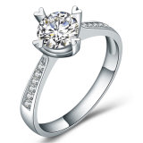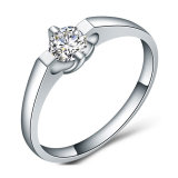 CARTIER(卡地亚) 18K白金单钻宽版戒指46#