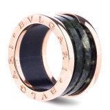 Bvlgari(宝格丽) 绿色理石/18K玫瑰金四环戒指 52#