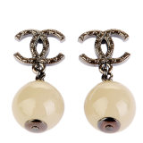 CHANEL(香奈儿) 银色水钻双C珍珠吊坠耳钉