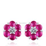 many many trees曼丽翠 1.34ct 18K金镶钻红宝石耳钉 木槿花