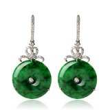 many many trees曼丽翠 天然a货翡翠阳绿缅甸翡翠A货镶白金平安扣耳环