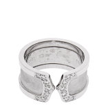 CARTIER(卡地亚) 白金宽版双C镶钻戒指54#/11.7g