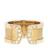 CARTIER(卡地亚) #18K黄金宽版双C镶钻戒指53#